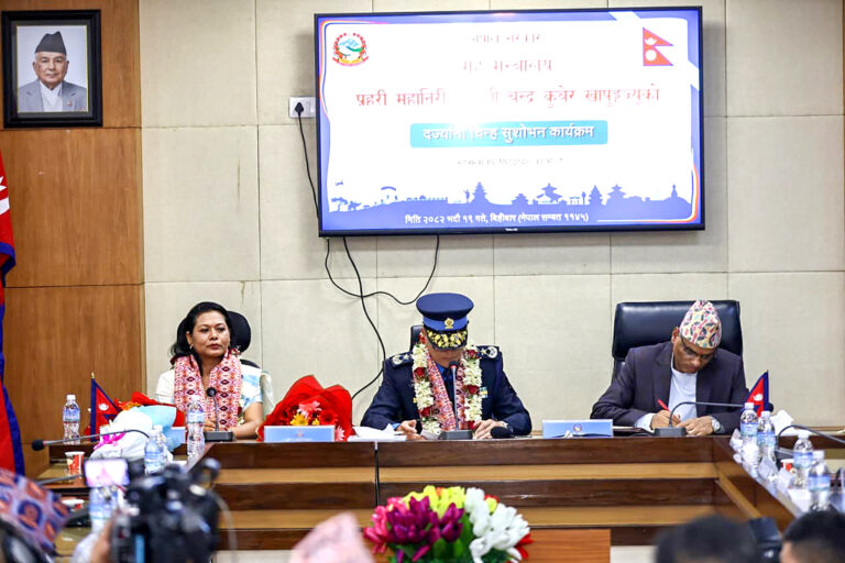 काठमाडौँ, १९ भदौ । नवनियुक्त प्रहरी महानिरीक्षक चन्द्रकुवेर खापुङले सामूहिक भावना र भातृत्वभावका साथ आ–आफ्नो जिम्मेवारी बहन गर्न मातहतका कर्मचारीलाई निर्देशन दिएका छन् ।