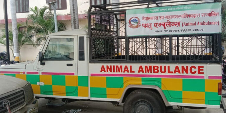 उनका अनुसार ‘एनिमल नेपाल’ नामक गैरसरकारी संस्थाले उपमहानगरपालिकालाई एनिमल एम्बुलेन्स हस्तान्तरण गरेको हो । नेपालगञ्जमा छाडा चौपाया सडक दुर्घटनामा पर्दै आएका छन् ।