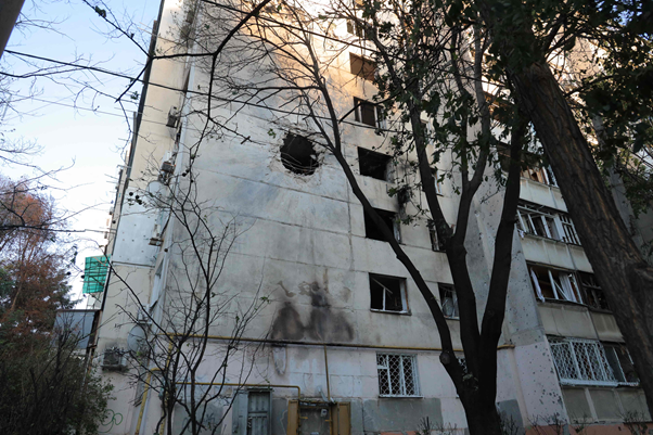 युक्रेनको उद्धार सेवाले भवनमा लागेको आगलागी र त्यसबाट निस्किरहेको धुवाँका तस्बिर सार्वजनिक गरेको छ ।