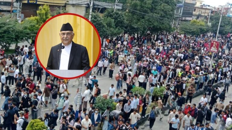 काठमाडौं, २३ भदौ । सामाजिक सञ्जालमाथि प्रतिबन्ध लगाउने सरकारको निर्णय र भ्रष्टाचारको विरुद्धम ‘जेन–जी’ पुस्ताले व्यापक प्रदर्शन गरेका छन् । जेन–जी पुस्ताले आयोजना गरेको प्रदर्शनका क्रममा सरकार र सरकारमा रहेका पदाधिकारीहरुविरुद्ध नाराबाजी भएको छ । माइतीघर मण्डलादेखि नयाँ बानेश्वरको संसद् भवनसम्म छपक्कै ढाकेका प्रदर्शनकारीहरुले प्रधानमन्त्री केपी शर्मा ओलीविरुद्ध चर्को नाराबाजी गरेका थिए ।