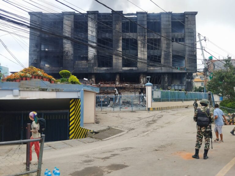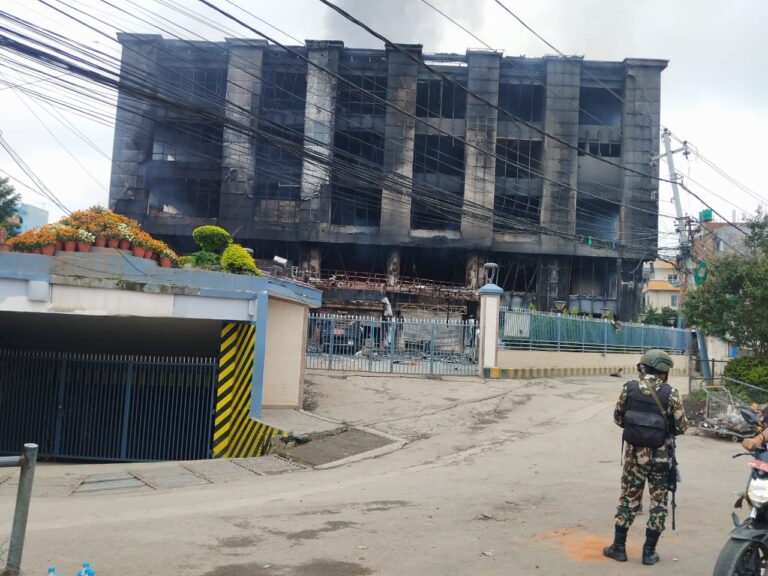 आगजनीबाट भाटभटेनी रहेको भवन पूर्ण रुपमा जलेर ध्वस्ता भएको छ । जेन–जी प्रस्ताले सोमबारदेखि गरेको आन्दोलनमा सरकारले दमन गर्दा २२ जनाभन्दा बढीको मृत्यु भएको थियो । सोमबारको प्रदर्शनका क्रममा व्यापक दमन सहेका जेन–जीहरुले मंगलबार भने विभिन्न सरकारी कार्यालय, नेताहरुको घर र उद्योगपति तथा व्यवसायीहरुको घर तथा व्यवसायस्थलमा तोडफोड र आगजनी गरेका थिए ।