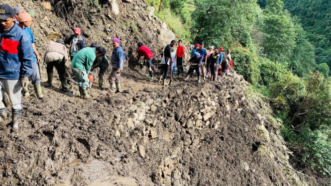 म्याग्दी, २७ भदौ । अन्नपूर्ण गाउँपालिका–८ राम्चेका बासिन्दाले श्रमदान गरेर सडक मर्मत गरेका छन् । नागी–राम्चे सडकको थावनगाउँ नजिकै छहरेखण्डमा गत असारको तेस्रो साता पहिरोले भत्काएको सडक स्थानीयवासीले श्रमदान गरेर मर्मत गरी यातायात सञ्चालन गरेका हुन् । राम्चेका बासिन्दा फसबहादुर गर्बुजाले बिहीबार करिब ७५ जनाले श्रमदान गरेर सडक मर्मत गरेका जानकारी दिए ।