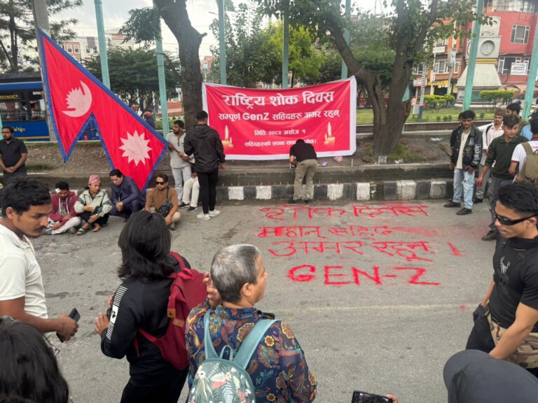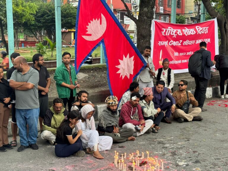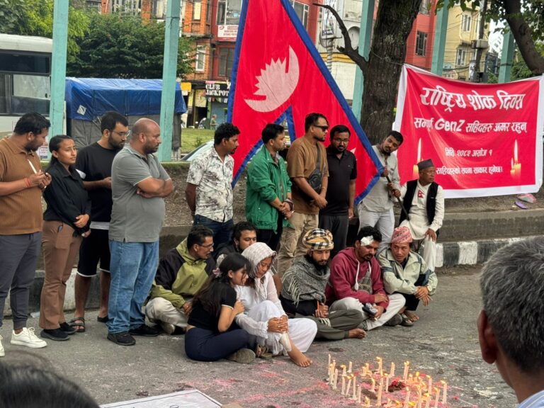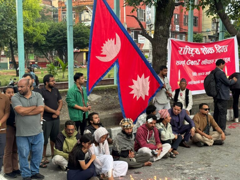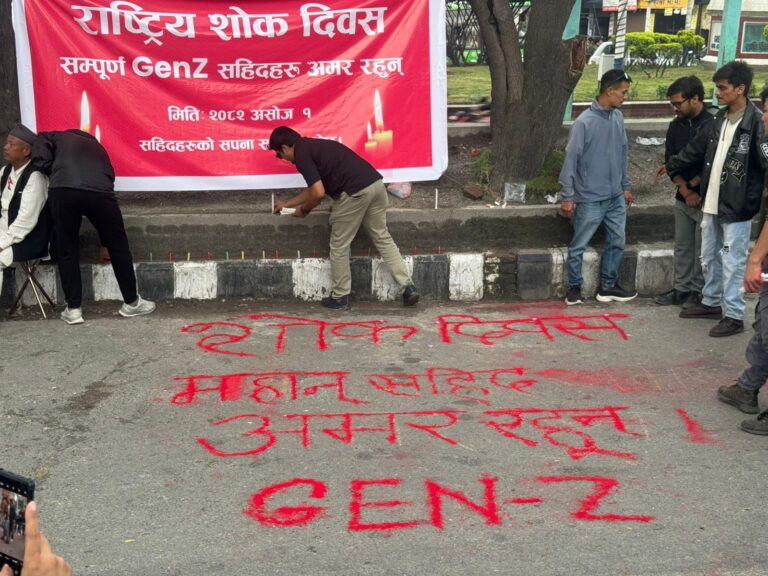 काठमाडौं, १ असोज । यही भदौ २३ गते जेन–जी आन्दोलनको क्रममा ज्यान गुमाएकाहरुको सम्झनामा आज राष्ट्रिय शोक दिवस मनाईएको छ । माइतीघरमा आज विभिन्न ब्यानरमा शोक दिवस मनाईएको छ ।