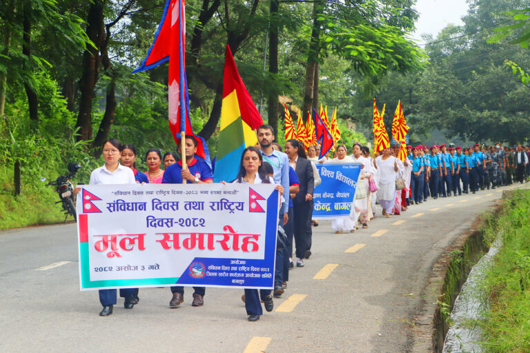 संविधान दिवस तथा राष्ट्रिय दिवस मूल समारोह समितिद्वारा आयोजित उक्त कार्यक्रमका अवसरमा बागलुङ नगरपालिका–१ बाङ्गेचौरस्थित सहिद स्मृति उद्यानमा रहेका सहिदका सालिकमा माल्यार्पण गरिएको थियो । यसअघि दिवसको अवसर पारेर बिहीबार धवलागिरि अस्पतालका बिरामीलाई फलफूल र धवलागिरि बहिरा आवसीय माध्यमिक विद्यालयका विद्यार्थीहरूलाई खेलकुद सामग्री वितरण गरिएको थियो ।