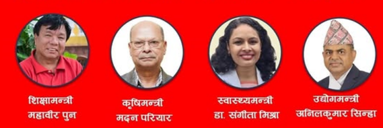 प्रधानमन्त्री सुशीला कार्कीले आइतबार अनिलकुमार सिन्हा, महावीर पुन, मदन परियार, संगीता कौशल मिश्रा र जगदीश खरेललाई मन्त्री नियुक्त गर्न राष्ट्रपति समक्ष सिफारिस गरेकी थिइन्।