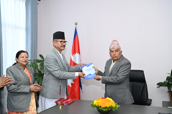 काठमाडौँ, ९ असोज । राष्ट्रपति रामचन्द्र पौडेलसमक्ष राष्ट्रिय दलित आयोगले गत आर्थिक वर्ष २०८१/०८२ को वार्षिक प्रतिवेदन पेस गरेको छ । आयोगका अध्यक्ष देवराज विश्वकर्माले आज राष्ट्रपतिको कार्यालयमा आयोजित कार्यक्रममा नेपालको संविधानको धारा २९४ बमोजिम सो प्रतिवेदन पेस गरेको राष्ट्रपतिको कार्यालयले जनाएको छ ।