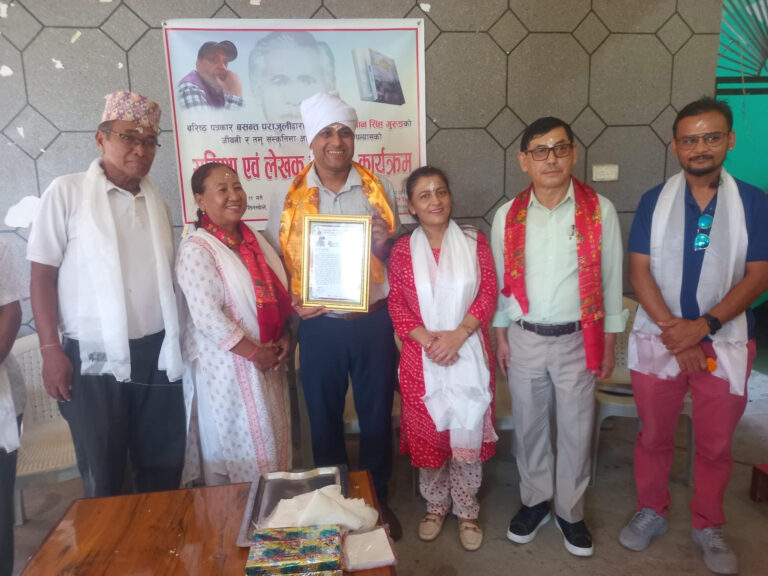 चितवन, १२ असोज । गुरुङ समुदायको श्रीवृद्धिका लागि अतुलनीय योगदान पु¥याएवापत् वरिष्ठ श्रष्टा वसन्त पराजुली सम्मानित भएका छन् । उनीद्वारा रचना गरिएको ‘बखान’ उपन्यासले गुरुङ समुदायको इतिहास, संस्कृति र राजनीतिक भूमिकालाई कलात्मक उजागर गरेको छ । गत भदौमा सो उपन्यास सार्वजनिक भएको थियो ।