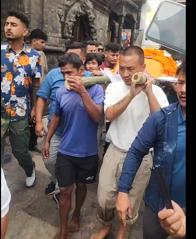 आर्यघाटमा अन्तिम श्रद्धाञ्जलीका लागि जेनजी आन्दोलनका अगुवाहरु समेत पुगेका थिए । हामी नेपालका संयोजक सुदन गुरुङले नेपालको झण्डा ओढाएर श्रद्धाञ्जली अर्पण गरेका थिए ।