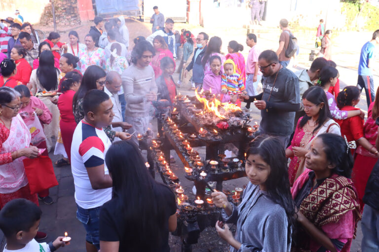 काठमाडौँ, १५ असोज । काठमाडौं हनुमानढोका दरवार क्षेत्रमा रहेको कालभैरव मन्दिरमा बुधबार पूजाअर्चना गर्न आएका भक्तजन धूपबत्ती बाल्दै । तस्बिर : हरिराम भेटुवाल/रासस
