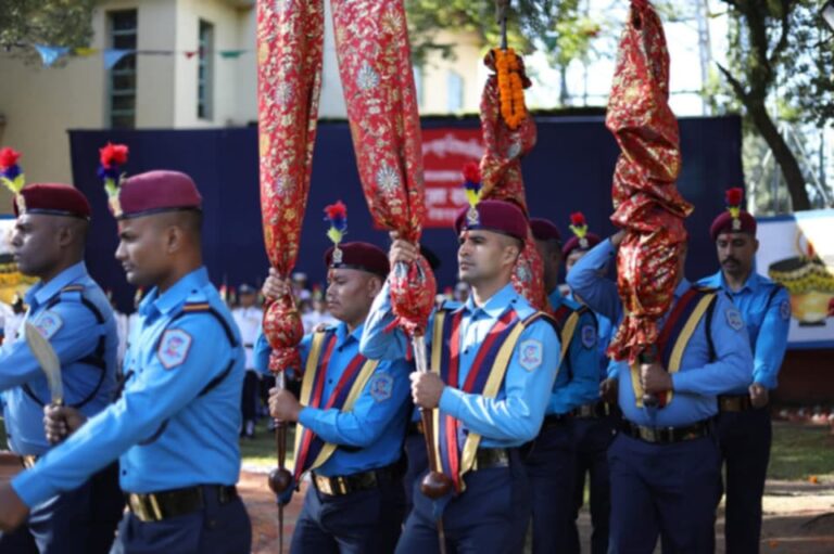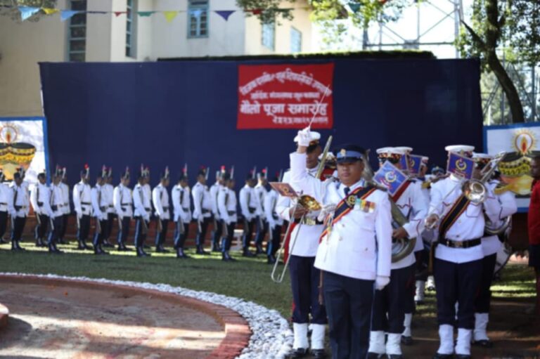 काठमाडौँ, १५ असोज । प्रहरी महानिरीक्षक चन्द्र कुबेर खापुङ्गले बडा दसैंका अवसरमा नेपाल प्रहरी सशस्त्र प्रहरी गण नम्बर १ नक्सालस्थित मौलोमा पूजाअर्चना तथा सङ्कल्प पूजा गरे ।