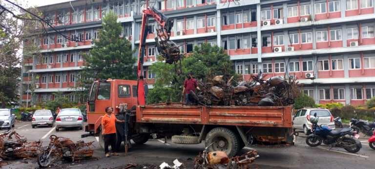 आगजनीमा क्षतिग्रस्त एक हजार सवारीसाधन सडक विभागका चार वटा भारी उपकरण प्रयोग गरेर ती हटाउन थालिएको विभागले जनाएको छ । हालसम्म २०० वटा चारपाङ्ग्रे र ४०० दुईपाङ्ग्रे सवारीसाधन व्यवस्थापन गरिएको छ ।