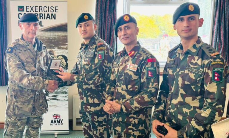 काठमाडौँ, २६ असोज । नेपाली सेनाले संयुक्त अधिराज्य बेलायतको वेल्स, ब्रेकनमा सञ्चालन भएको एक्सरसाइज क्याब्रिअन पट्रोल, २०२५ मा स्वर्ण पदक प्राप्त गर्न सफल भएको छ ।