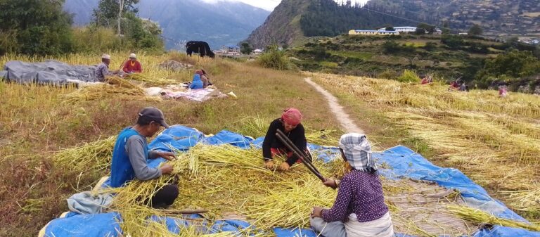 जिल्लाका खार्पुनाथ, सर्केगाड, चङ्खेली, ताँजकोट, अदानचुली र नाम्खा गाउँपालिकाका किसान बाली भित्र्याउन व्यस्त छन् । माथिल्लो हुम्लामा अधिकांश बाली पाकिसकेको छ । चिनो, कागुनो, तिते फापर, मिठे फापर, कोदो, सिमी, भटमास, आलुलगायत बाली थन्क्याउने चटारो रहेको खार्पुनाथकी प्रगति रोकायाले बताए । समयर्म बाली नभित्र्याउँदा गाईवस्तु जथाभावी खेतबारीमा छोडिने भएकाले समयमै बाली भित्र्याउनुपर्ने बाध्यता रहेको उनले बताए ।