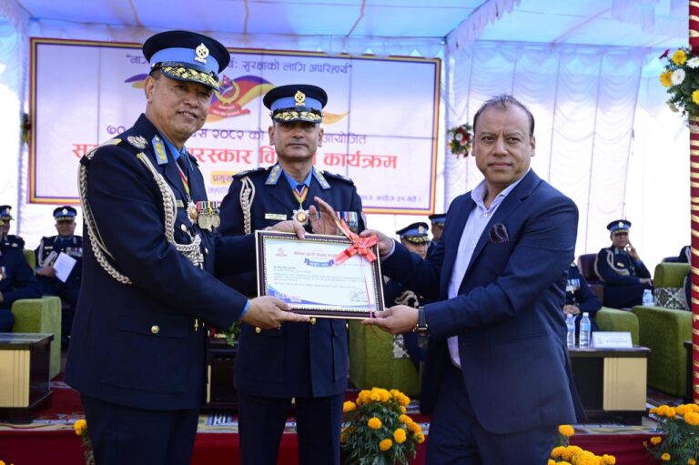 काठमाडौं, ३१ असोज । नेपाल प्रहरीले स्थापना दिवसको अवसरमा गैरआवासीय नेपाली संघ (एनआरएनए) अन्तरराष्ट्रिय समन्वय परिषद्का अध्यक्ष महेश कुमार श्रेष्ठलाई सम्मान गरिएको छ । प्रहरी प्रधान कार्यालय नक्सालमा आयोजित ७० औं स्थापना दिवसको विशेष समारोहकाबीच अध्यक्ष श्रेष्ठलाई सम्मान गरिएको हो ।