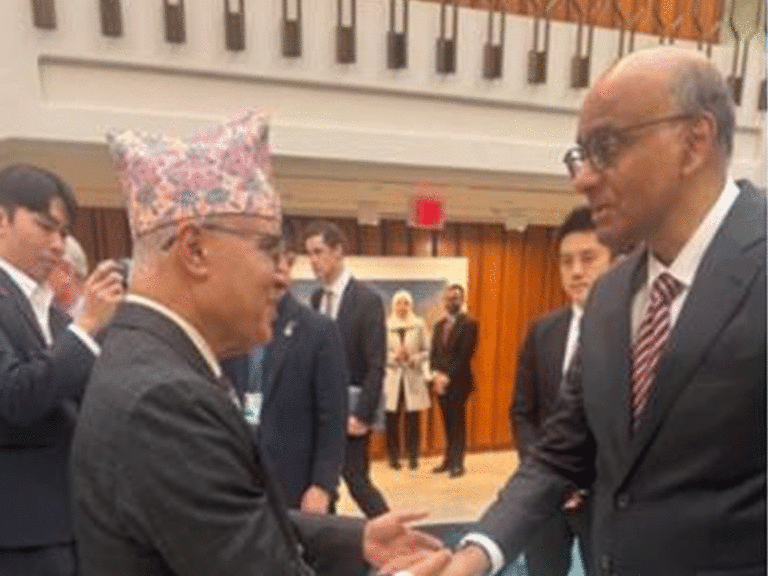 अमेरिका, १ कात्तिक । अर्थमन्त्री रामेश्वरप्रसाद खनालले सिङ्गापुरका राष्ट्रपति थरमन शानमुगार्थमसँग भेटवार्ता गरेका छन् ।