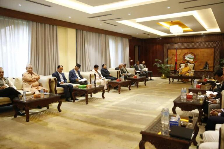काठमाडौं, ४ कार्तिक । प्रधानमन्त्री सुशीला कार्कीले बोलाएको राजनीतिक दलका नेताहरुको बैठक सुरु भएको छ । प्रतिनिधिसभाको आगामी फागुन २१ गतेको लागि तय गरिएको निर्वाचनको तयारीको सन्दर्भमा प्रधानमन्त्री कार्कीले आज पहिलोपटक राजनीतिक दलका प्रतिनिधिहरुसँग बालुवाटारमा सम्वाद थालेकी हुन् ।