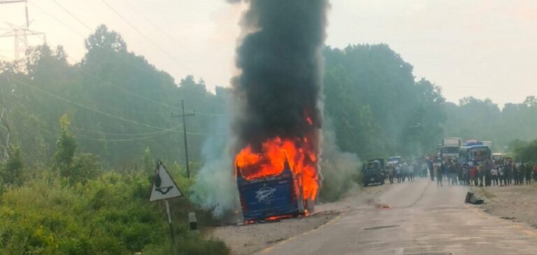 काठमाडौं, कात्तिक ५। रौतहटको चन्द्रपुर नगरपालिका–४ पश्चिम लच्का नजिक आज बिहान एक यात्रुवाहक बसमा आगलागी भएको छ ।