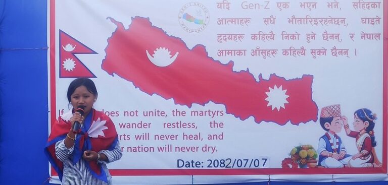 ‘जेनजी युनाइटेड–फर परिवर्तन’ संस्थाले आज माइतीघर मण्डलामा आयोजना गरेको खबरदारी सभामा सम्बोधन गर्दै अभियान्ताहरुले देशभरको जेनजीलाई एकताबद्ध बनाउन सरकारले नै पहल गर्नुपर्नेमा जोड दिए ।