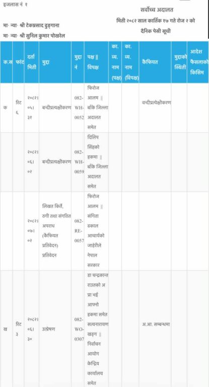 यो रिटमा यसअघि न्यायाधीश तिलप्रसाद श्रेष्ठको इजलासले प्रारम्भिक सुनुवाइ गरेको थियो । त्यसमा अहिलेसम्म भएका निर्णय यथास्थितिमा राख्न र छलफलका लागि दुवै पक्षलाई बोलाउने आदेश भएको थियो ।