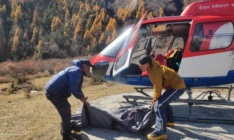 आरोहीको शव हेलिकोप्टरमार्फत सामागाउँ ल्याइएको छ । पाङबारीे हिमालबाट फर्कने क्रममा तीन इटालियन नागरिक र एक नेपाली सहयोगी गत बुधबारदेखि पहिलो शिविर र आधार शिविरमा अलपत्र परेका थिए । फरिनातो र गापुटो हिमाल आरोहण गर्न नसकेपछि फर्कने क्रममा हिमपातका कारण अलपत्र परेका बताइएको छ ।