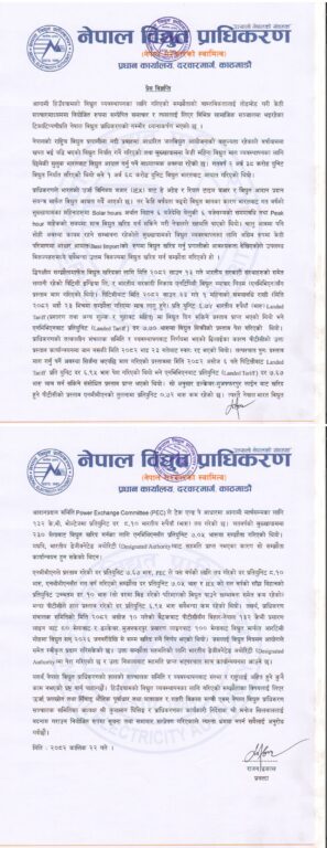 काठमाडौं, २२ कार्तिक । नेपाल विद्युत प्राधिकरणले आगामी हिउँदयामको विद्युत व्यवस्थापनका लागि गरिएको सम्झौताको वास्तविकतालाई तोडमोड गरी नियोजित रुपमा समाचार सम्प्रेषण गरिएको भन्दै गम्भीर ध्यानाकार्षण गराएको छ ।प्राधिकरणको तर्फबाट प्रवक्ता राजन ढकालले आज एक विज्ञप्ती निकाल्दै यस्तो आपत्ति जनाएका हुन् ।