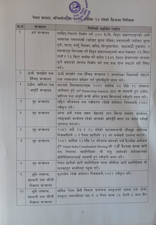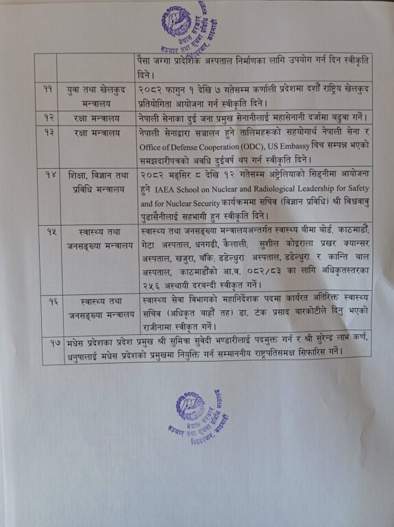 मन्त्रिपरिषद्का १७ निर्णयः मन्त्री सिन्हा भारत भ्रमणमा जाने