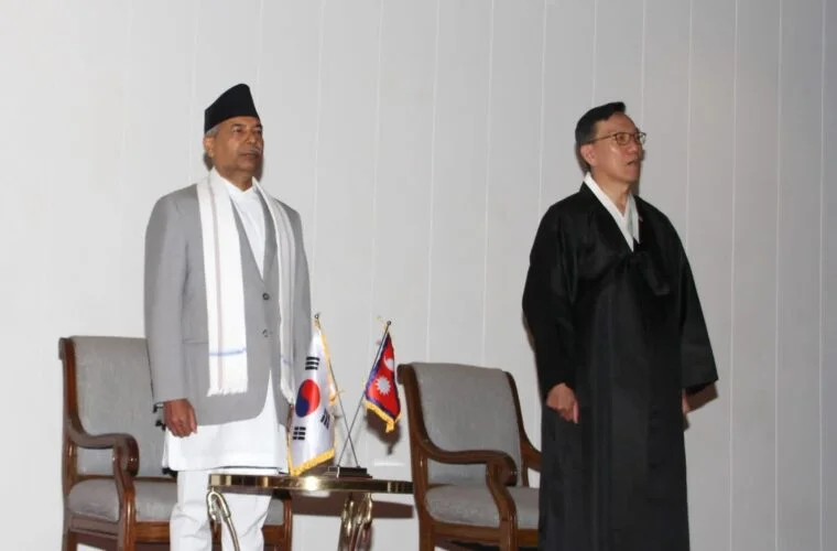 काठमाडौं, कार्तिक २७ । उपराष्ट्रपति रामसहायप्रसाद यादव गणतन्त्र कोरियाको राष्ट्रिय दिवसका अवसरमा बुधबार साँझ यहाँ आयोजित स्वागत समारोहमा सहभागी भए । त्यस अवसरमा सङ्क्षिप्त मन्तव्य व्यक्त गर्दै नेपालका लागि कोरियाली राजदूत पार्क थेयङले नेपालको दिगो आर्थिक विकास र समृद्धिका लागि कोरिया सरकार नेपालसँग सहकार्य गरेर अगाडि बढिरहेको बताए ।