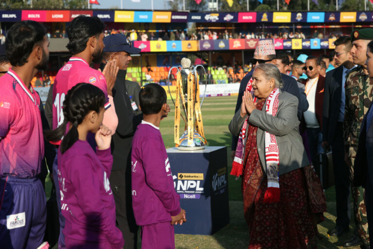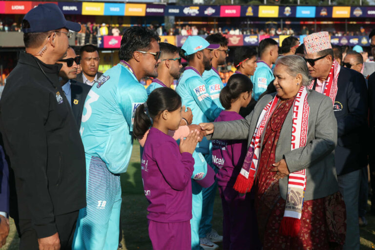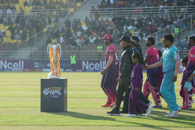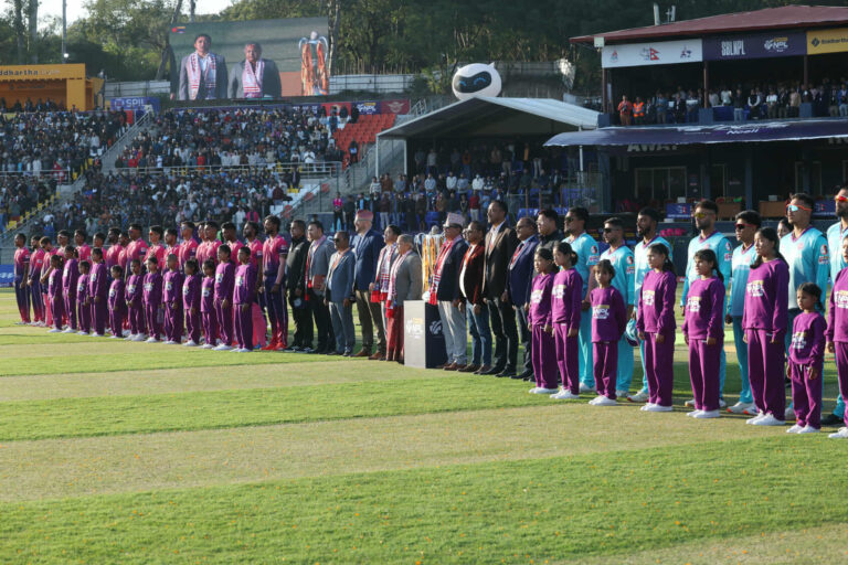 त्रिवि क्रिकेट रंगशाला, कीर्तिपुरमा उनले लिग सुरु भएको घोषणा गरेपछि उद्घाटन खेलमा काठमाडौँ गोर्खाज् र जनकपुर बोल्टस आमने सामने भएका थिए।