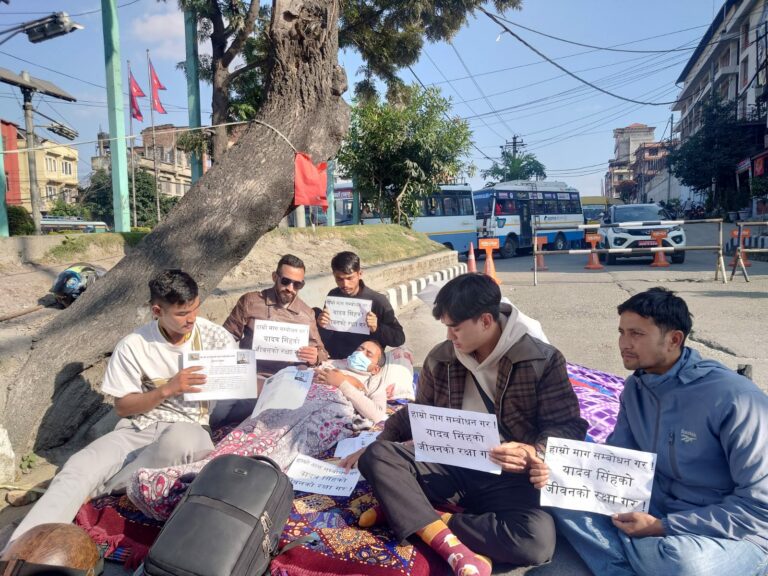 काठमाडौं, १ मंसिर । जेन-जी आन्दोलनमा घाइते भएका यादव सिंहको जीवन रक्षाको माग गर्दै युवाहरुले माइतीघरमा धर्ना दिएका छन् । काठमाडौंको माइतीघरमा घाईते सिंहसहित उनीहरु धर्नामा बसेका हुन् । उनीहरुले आफूहरुको माग पूरा गर्नुपर्ने भनेका छन् । धर्ना कार्यक्रममा ऐक्यबद्धता जनाउनको लागि प्राइम टिभीका अध्यक्ष तथा रिपोर्टर्स क्लब नेपालका सभापति ऋषि धमला धर्नास्थल पुगेका थिए ।