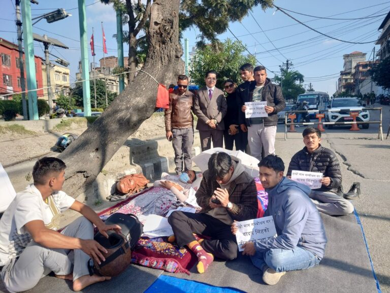 काठमाडौं, १ मंसिर । जेन-जी आन्दोलनमा घाइते भएका यादव सिंहको जीवन रक्षाको माग गर्दै युवाहरुले माइतीघरमा धर्ना दिएका छन् । काठमाडौंको माइतीघरमा घाईते सिंहसहित उनीहरु धर्नामा बसेका हुन् । उनीहरुले आफूहरुको माग पूरा गर्नुपर्ने भनेका छन् । धर्ना कार्यक्रममा ऐक्यबद्धता जनाउनको लागि प्राइम टिभीका अध्यक्ष तथा रिपोर्टर्स क्लब नेपालका सभापति ऋषि धमला धर्नास्थल पुगेका थिए ।