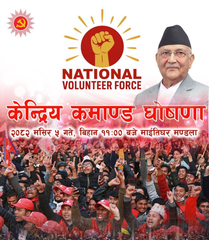आज एमालेको ‘नेसनल भोलेन्टियर फोर्स’ घोषणा हुँदै