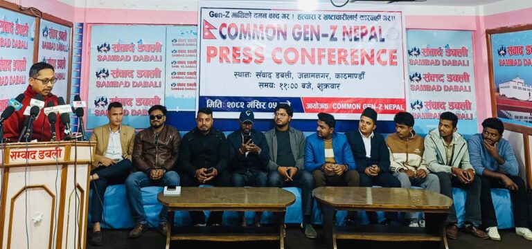 Common Gen-Z Nepal ले काठमाडौको घटेकुलो, अनामनगरमा आज पत्रकार सम्मेलन गर्दै विभिन्न समूहमा विभाजित जेनजी समूहहरुलाई गोलबद्ध र एकीकृत हुन साहले आग्रह गरेका छन् ।