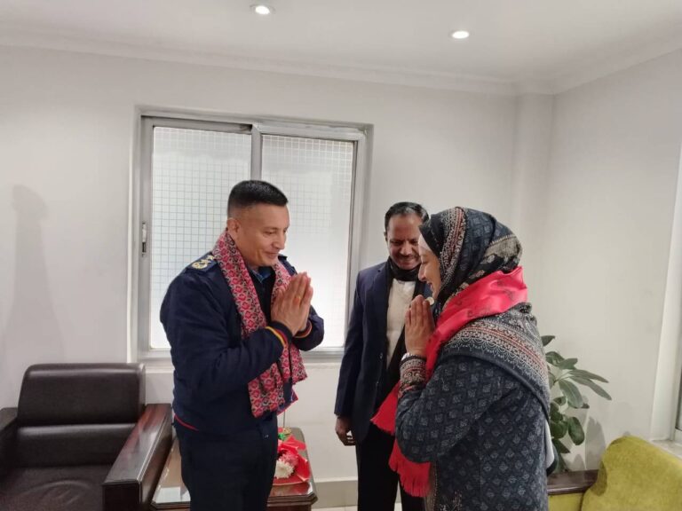 काठमाडौं, १२ मंसिर । मधेस प्रदेशकी गृह कानुन तथा सञ्चारमन्त्री प्रदेश सभा सदस्य बिमला अन्सारीले गृहमन्त्री ओम प्रकाश अर्यालसँग भेट गरेकी छिन् । गृहमन्त्री अर्यालसँगै उनले नेपाल प्रहरीका प्रमुख दानबहादुर कार्कीसँग भेटघाट गरेको उनको सचिवालयले जनाएको छ ।