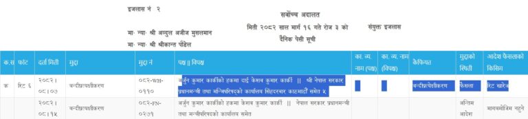 काठमाडौं, १६ मंसिर । सर्वोच्च अदालतले पूर्वसचिव अर्जुनकुमार कार्कीलाई थुनामुक्त गर्न अस्वीकार गरेको छ।