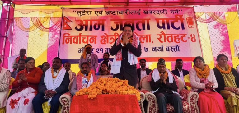रौतहट, २१ मंसिर । रिपोर्टर्स क्लब नेपालका सभापति एवम् प्राइम टिभीका अध्यक्ष ऋषि धमलाले देश र जनतालाई शीरमा राखेर राजनीति गर्नेले नै अब देशको नेतृत्व गर्नुपर्ने बताएका छन् । उनले देश विकास नहुनुमा भ्रष्टाचार र लुटतन्त्र प्रमुख कारण भएको भन्दै अब देशबाट भ्रष्टाचार जरैदेखि उखेलेर फाल्नुपर्ने बेला आएको बताए । आम जनता पार्टीको निर्वाचन क्षेत्रीय भेला रौतहट–४ चन्द्रपुर–७ नयाँ बस्तीमा आयोजित आजको कार्यक्रमलाई सम्बोधन गर्दै उनले यस्तो बताएका हुन् ।