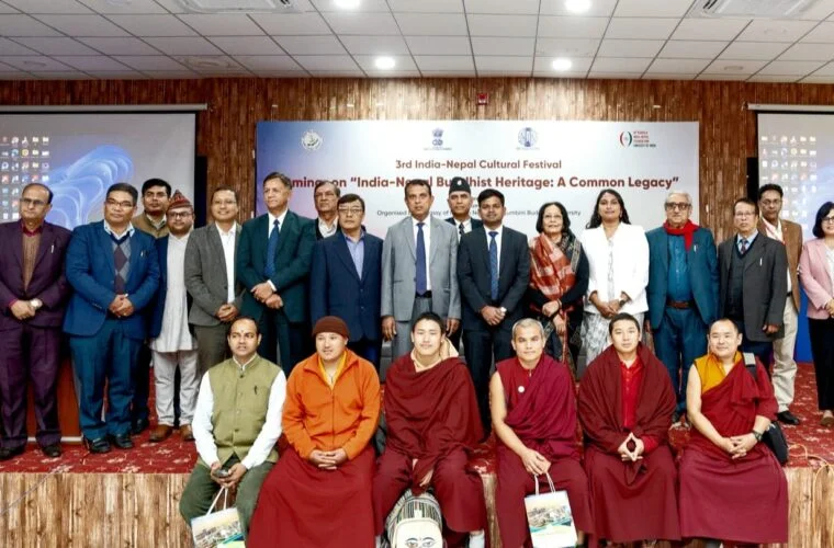 काठमाडौं, मंसिर २३ । नेपालस्थित भारतीय राजदूतावासले लुम्बिनी विकास कोष र लुम्बिनी बौद्ध विश्वविद्यालयसँगको सहकार्यमा आज लुम्बिनीमा भारत–नेपाल सांस्कृतिक महोत्सवको तेस्रो संस्करण सम्पन्न गरेको छ । कार्यक्रम बौद्ध धर्ममा केन्द्रित हुँदै भारत र नेपाल दुवै देशको समृद्ध सांस्कृतिक सम्पदा र परम्पराको उत्सवका रूपमा मनाइएको हो ।