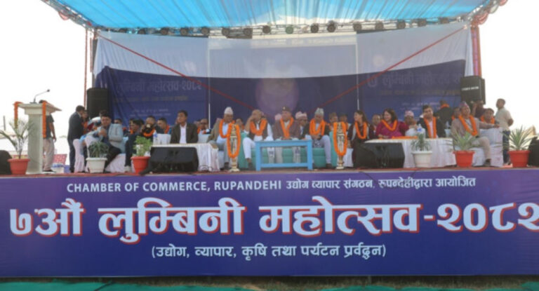देवदह (रुपन्देही), २३ मङ्सिर । चेम्बर अफ कमर्स तथा उद्योग व्यापार सङ्गठन, रुपन्देहीको आयोजनामा भैरहवामा सञ्चालित सातौँ लुम्बिनी महोत्सव सम्पन्न भएको छ । उद्योग, व्यापार, कृषि तथा पर्यटन प्रवर्द्धनमा सहयोग पुर्याउने उद्देश्यले महोत्सव आयोजना गरिएको हो ।