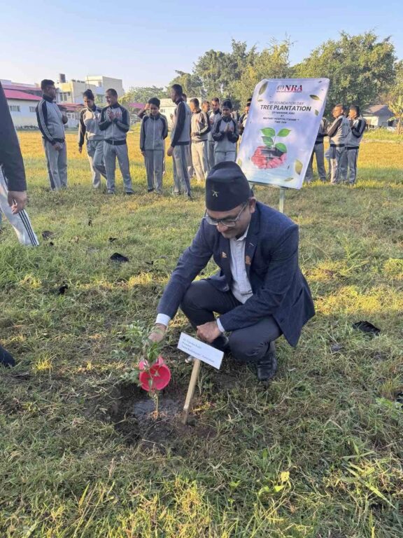 इटहरी २४ मङ्सिर । नेपाल रेडियोलोजिष्ट एसोसियसनले आफ्नो ३१औँ स्थापना दिवसको अवसरमा इटहरीस्थित सैनिक अस्पताल परिसरमा १०० वटा बिरुवा रोपेर हरित पहल अघि बढाएको छ।