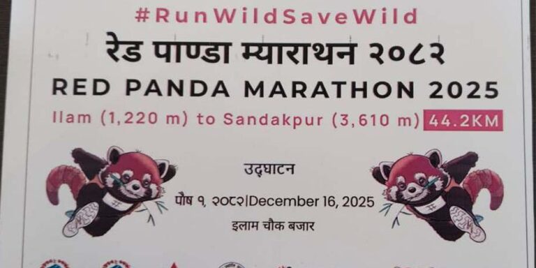लोपोन्मुख रेडपाण्डा (हाब्रे) संरक्षण, खेलकुद र पर्यटन प्रवर्द्धनका लागि आयोजना हुने ‘रेडपाण्डा म्याराथन’ मा नेपालका राष्ट्रिय तथा अन्तरराष्ट्रिय धावकको समेत सहभागिता रहने रेडपाण्डा नेतवर्कका कार्यक्रम निर्देशक वाङचु भुटियाले जानकारी दिए ।