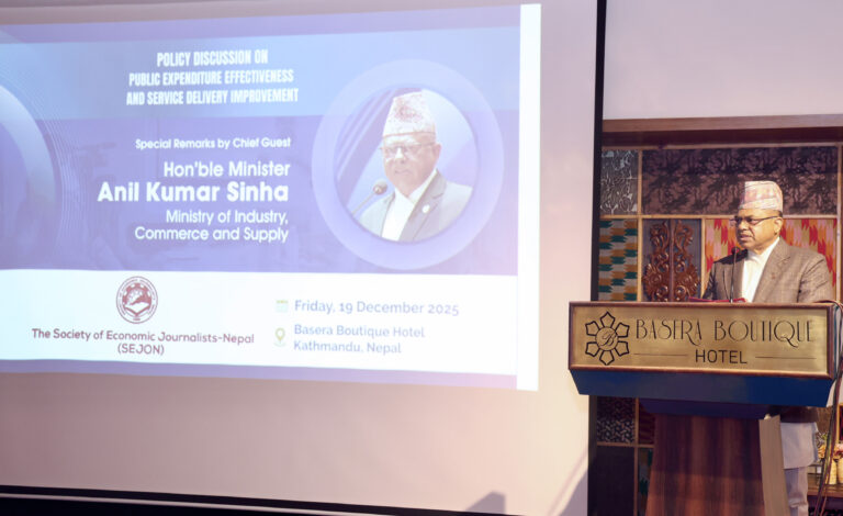 नेपाल आर्थिक पत्रकार समाज (सेजन) ले आज यहाँ आयोजना गरेको ‘सार्वजनिक खर्चको प्रभावकारिता र सेवा प्रवाह सुधारका लागि नीति संवाद कार्यक्रम’ मा उनले जनताबाट सङ्कलित करको उचित र जिम्मेवार प्रयोग हुन नसक्दा असन्तुष्टि बढ्दै गएको धारणा राखे ।