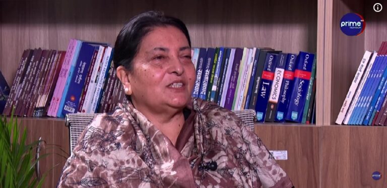 काठमाडौं, ७ पुष । पूर्व राष्ट्रपति विद्यादेवी भण्डारीले आफूले पूर्वराजा ज्ञानेन्द्र शाहसँग भेटवार्ता र कुराकानी नगरेको बताएकी छिन् । प्राइम टिभीबाट प्रसारण भएको ‘जनता जान्न चाहन्छन्’ कार्यक्रमको लागि पत्रकार ऋषि धमलाले सोधेको ‘पूर्वराजासँग सम्वाद, कुराकानी कत्तिको हुन्छ ?’ भनेर सोधेको प्रश्नमा उनले भनिन्,‘होईन, छैन । भेटघाट छैन ।’