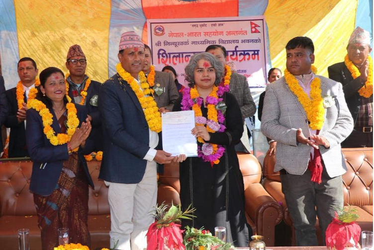 भारत सरकारको सहयोगमा गुल्मीको धुर्कोट गाउँपालिका–३ मा अवस्थित निन्युखर्क माध्यमिक विद्यालयका लागि निर्माण गरिने भवनको शिलान्यास गरिएको छ । उक्त भवनको मङ्गलबार काठमाडौँस्थित भारतीय राजदूतावासका काउन्सुलर गीताञ्जली ब्रैँडन र गुल्मीको धुर्कोट गाउँपालिकाका अध्यक्ष भूपाल पोखरेलले संयुक्त रुपमा शिलान्यास गरेका हुन।