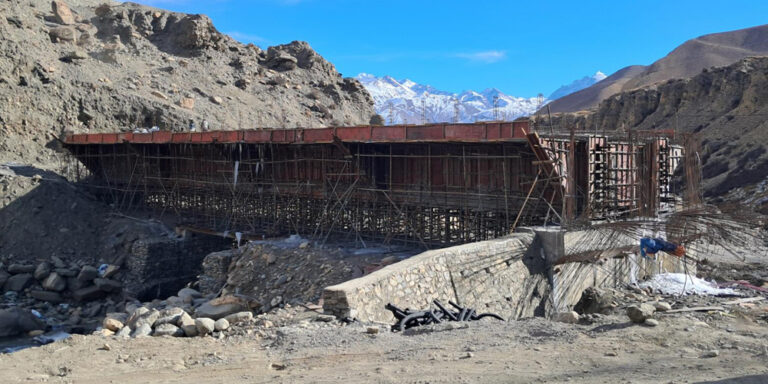 मुस्ताङ, ९ पुस । नेपाल–चीनको सीमानाका कोरलानाका जोड्ने माथिल्लो मुस्ताङको लोघेकर दामोदरकुण्ड गाउँपालिका–२ स्थित घमी खोलामा निर्माणाधीन पुल अन्तिम चरणमा पुगेको छ । कालीगण्डकी करिडोर (बेनी–जोमसोम–कोरला) सडक आयोजनाले यहाँ निर्माणाधीन घमी खोला पुलको भौतिक प्रगति ८० प्रतिशत पुगेको र चालु आर्थिक वर्षमै सक्नेगरी काम गरिरहेको जनाइएको छ ।