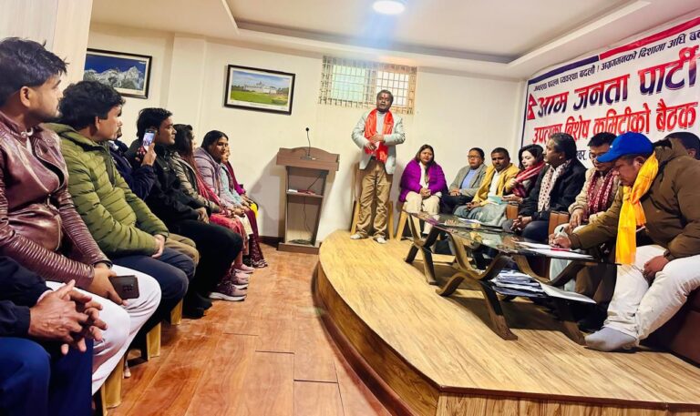 काठमाडौं, १६ पुस । नेकपा (एमाले) र नेपाली कम्युनिष्ट पार्टी (नेकपा) परित्याग गर्दै नेताहरु आम जनता पार्टी (आजपा) मा प्रवेश गरेका छन् ।काठमाडौंको कोटेश्वरस्थित आजपाको केन्द्रीय कार्यालयमा आज बसेको काठमाडौंमा उपलब्ध केन्द्रीय सदस्यहरुको आकस्मिक बैठकमार्फत एमाले र नेकपा परित्याग गर्दै नेताहरु आजपामा प्रवेश गरेका हुन् ।