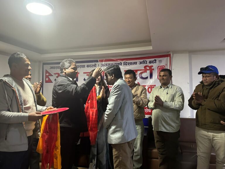 आजपा अध्यक्ष एंव पुर्वमन्त्री प्रभु साहले नवप्रवेशीहरुलाई टीका, माला लगाई पार्टीमा स्वागत गरे । पार्टी प्रवेश गर्नेलाई क्षमता, योग्यता अनुसार पार्टीमा जिम्मेवारी दिइने उनले बताए । साथै अगामी निर्वाचन केन्द्रीत पार्टीको गतिविधिमा लाग्न साहले निर्देशन समेत दिए ।