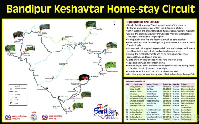 बन्दीपुर, पाहुना र विन्दवासिनी सामुदायिक घरबासमा एकै साथ १५० जनासम्म राख्न सकिने जनाइएको छ । यस होमस्टे सर्किटमा झारगाउँ, कन्यादेवी मन्दिर, मणिमुकुन्देश्वरी मन्दिर, बन्दीपुर बजार लगायतका धार्मिक तथा सांस्कृतिक र पर्यटकीय ग्रामीण बस्तीको अनुभव लिन सकिनेछ । रासस