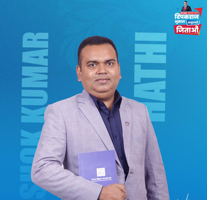 काठमाडौं, पुस १९ । नेपाल शैक्षिक परामर्श संघ (इक्यान)को केन्द्रीय सदस्य पदका लागि अशोक कुमार हाथीले उम्मेदवारी दिएका छन् । उनले आगामी पुस २८ गते हुन गइरहेको नयाँ नेतृत्वको लागि दिपकराज भूसाल समूहबाट केन्द्रिय कार्यसमिति सदस्यका लागि उम्मेदवारी दिएका हुन् । इक्यानको २० औँ वार्षिक साधारण सभा यही पुस २८ गते काठमाडौंमा हुने भएको छ । उक्त साधारणसभाले इक्यानमा नयाँ कार्यसमिति चयन हुनेछ ।
