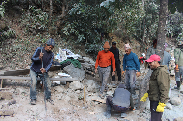दुई सातादेखि दैनिक १२ देखि १५ जना पदमार्ग निर्माणमा खटिएका छन् । रानीपौवादेखि चमेरे हुँदै आर्यघाटसम्मको गोरेटोबाटोमध्ये करिब एक किलोमिटर बाटो भिरालो र साँघुरो भएकाले त्यसलाई स्तरोन्नतिसहित पक्की पदमार्ग बनाएर पुनर्निर्माण गर्नुपर्ने अवस्थामा छ ।