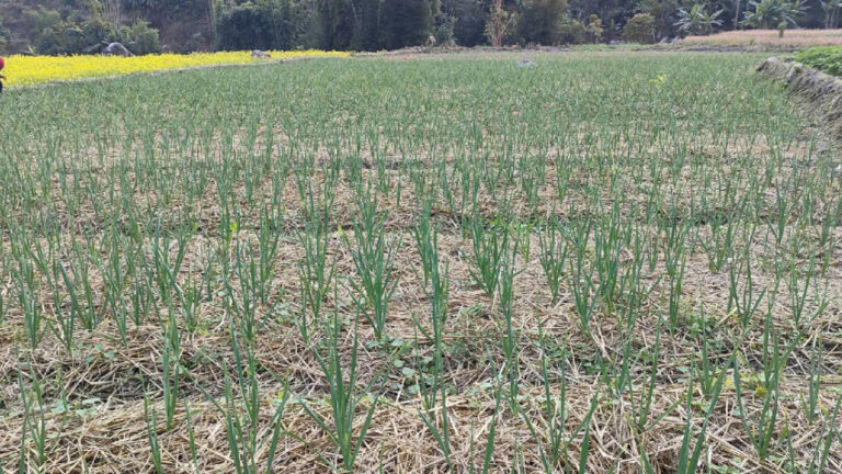 अघिल्लो वर्ष लसुन र प्याजखेतीको नमूना परीक्षण गरेको पालिकाले यस वर्ष किसानलाई अनुदान सहयोग गरी यसतर्फ आकर्षित गरेको गाउँपालिकाका अध्यक्ष नवराज ओझाले बताए । उनका अनुसार गाउँपालिकाका सातवटै वडाको करिब ४०० रोपनी क्षेत्रफलमा लसुन र प्याजको खेती भइरहेको छ ।