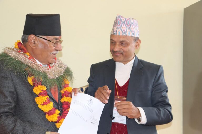 काठमाडौं, ६ माघ । नेपाली कम्युनिष्ट पार्टी (नेकपा) का संयोजक पुष्पकमल दाहाल ‘प्रचण्ड’ ले प्रतिनिधिसभा सदस्य निर्वाचनका लागि उम्मेदवारी दर्ता गराएका छन् । प्रचण्डले पूर्वी रुकुम पुगेर उम्मेदवारी दर्ता गराएका हुन् ।